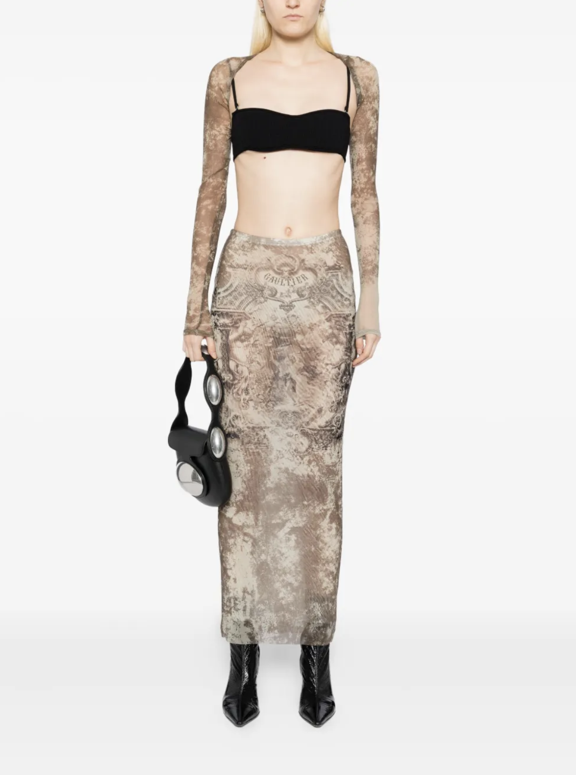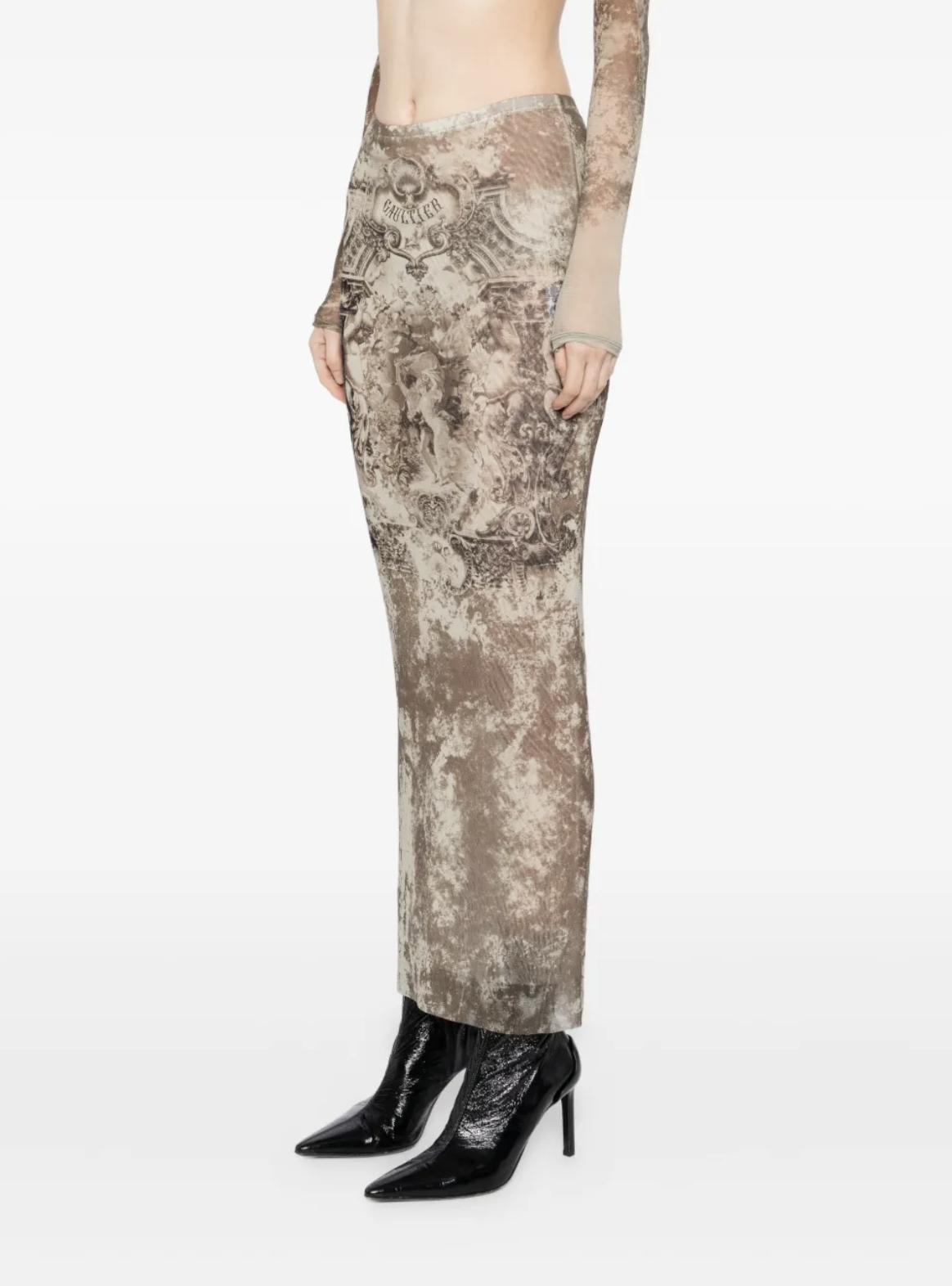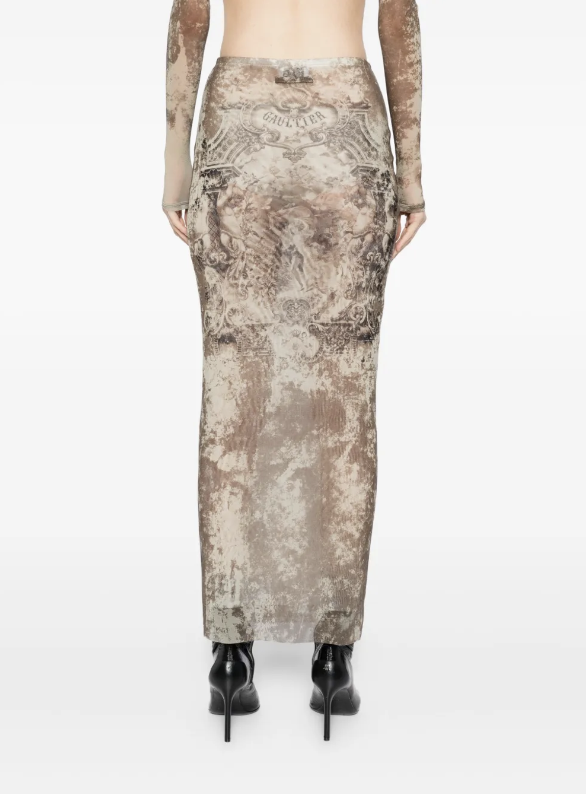 JEAN-PAUL GAULTIERMESH LONG SKIRT PRINTED MÉDAILLON LIGHTBEIGE/TAUPE