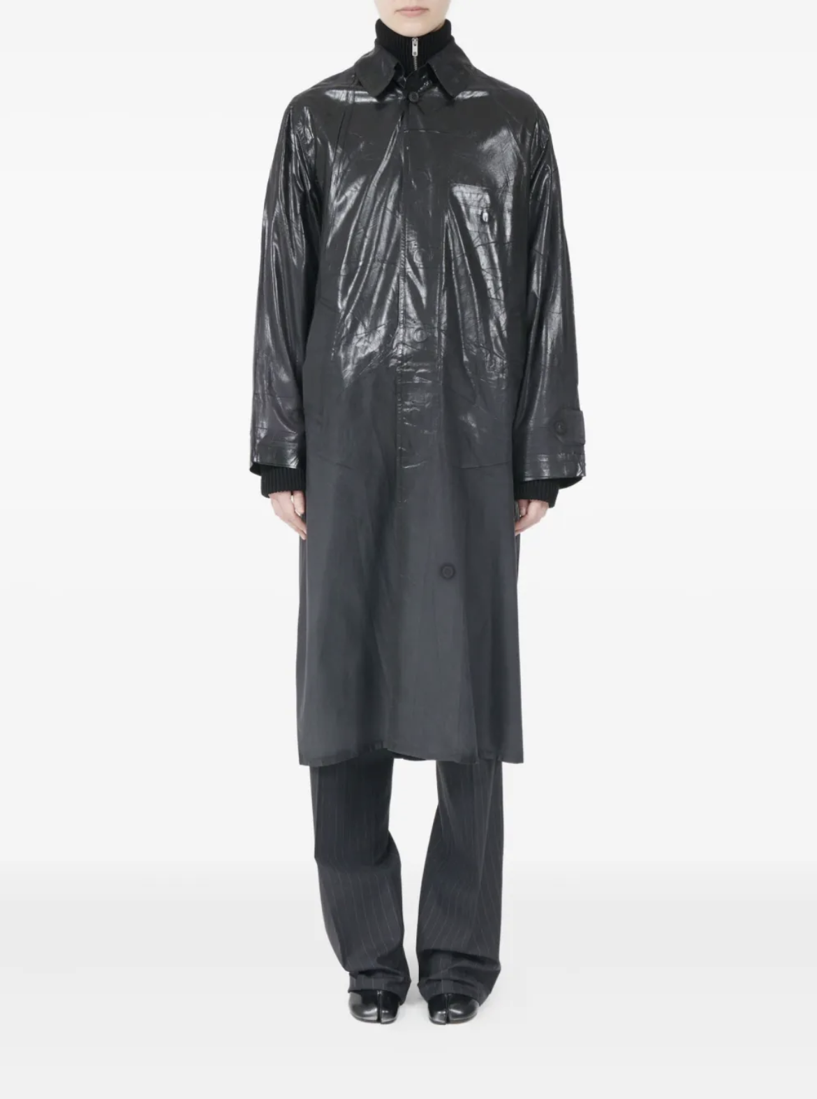 MAISON MARGIELACOATED TRENCH COAT BLACK