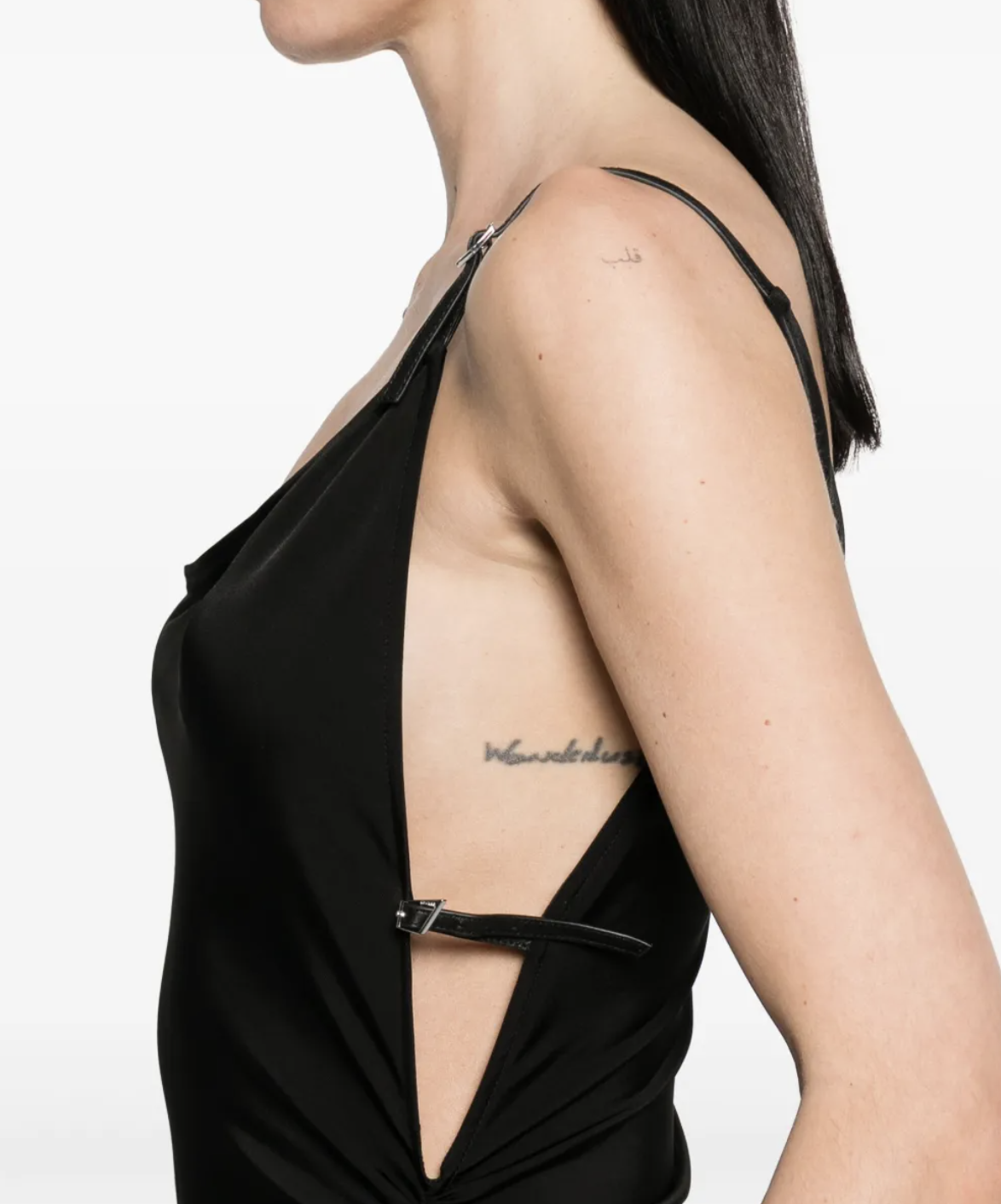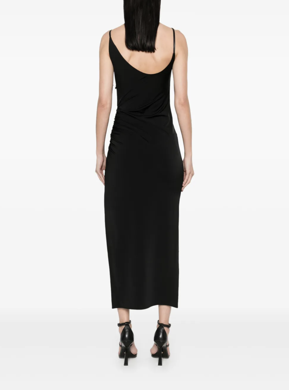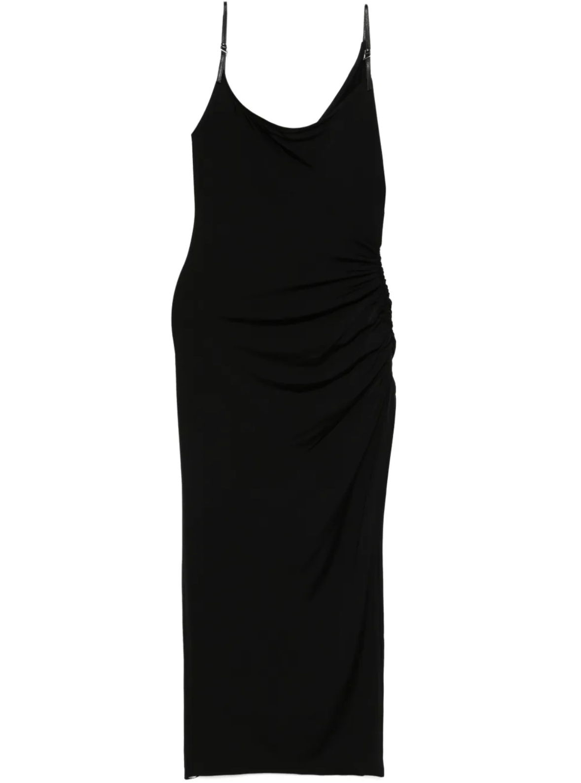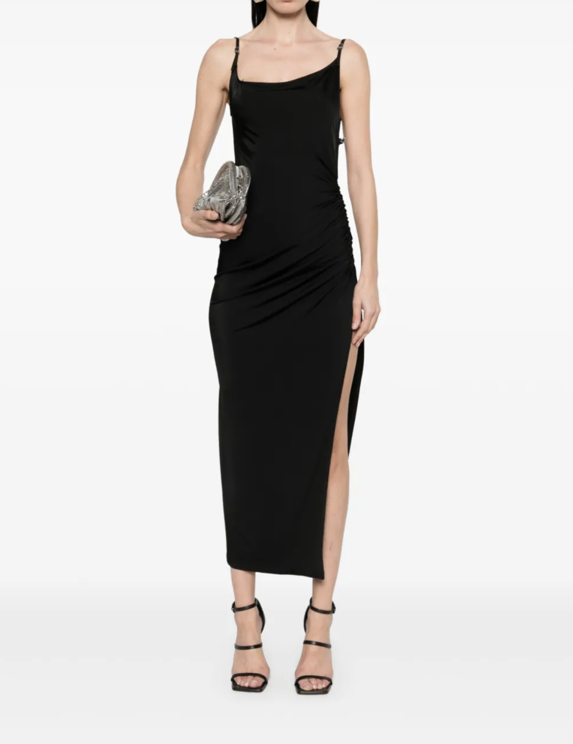 Black asymmetrical maxi dress with buckle detail