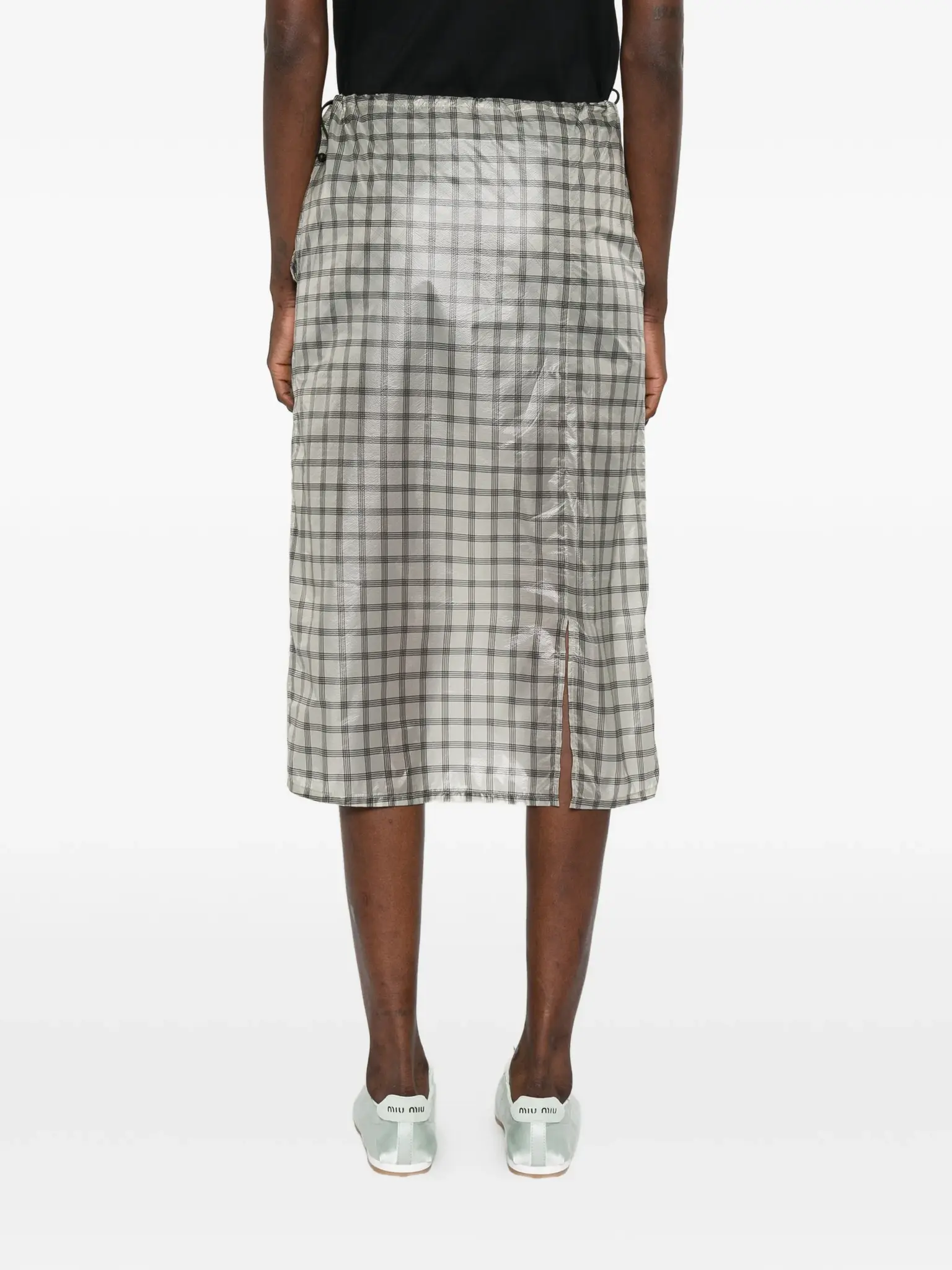 ROANia See Through Printed Check Mid Skirt White