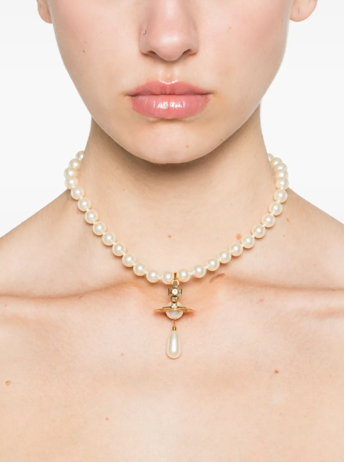VIVIENNE WESTWOODONE ROW PEARL DROP CHOKER GOLD PEARL MULTI